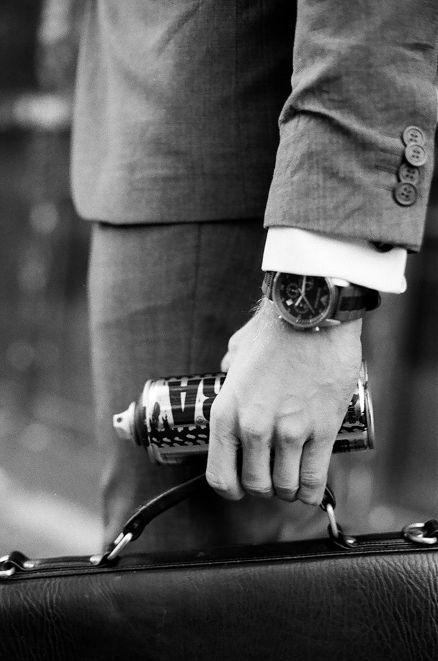 Die Grundlagen hat er von einem Freund beigebracht bekommen, und das Model auf den beiden Bildern ist sein Kumpel Clemens. „Als er auf der Bread & Butter gearbeitet hat, ist mir aufgefallen das er im Anzug richtig gut aussieht. Ich hatte diese Idee zu den Fotos bereits im Kopf und habe ihn dann gefragt, ob er das Model sein will. Wir standen dann vor dem Tacheles und ich habe die Frau, die man auf dem Bild links neben ihm sieht, schon von weitem kommen sehen. Jetzt musste ich nur noch warten, um den perfekten Moment zu erwischen. Nach dem Shooting wäre meine Kamera beinahe von einer Zigeunerin geklaut wurden. Das wäre ziemlich scheisse gewesen! Nicht nur wegen der Kamera, sondern weil eben dieses Bild drauf war“, erzählte er mir heute. Allerdings wäre das scheisse gewesen! Dank viraler Verbreitung gingen diese Bilder nämlich in Rekordzeit um die Welt. Nach soviel positivem Feedback sollte sich Linus fragen, ob es nicht an der Zeit ist der Club-Welt ade zu sagen, um zu gucken was die Welt der Kunst für ihn zu bieten hat. Ich bin jedenfalls von seinem Debüt mehr als begeistert und schon sehr gespannt, was von ihm in Zukunft noch kommen wird.